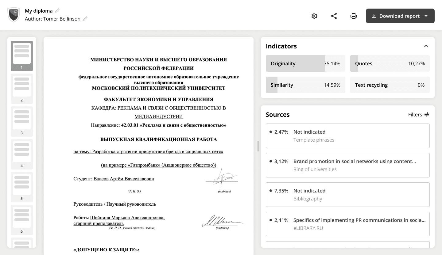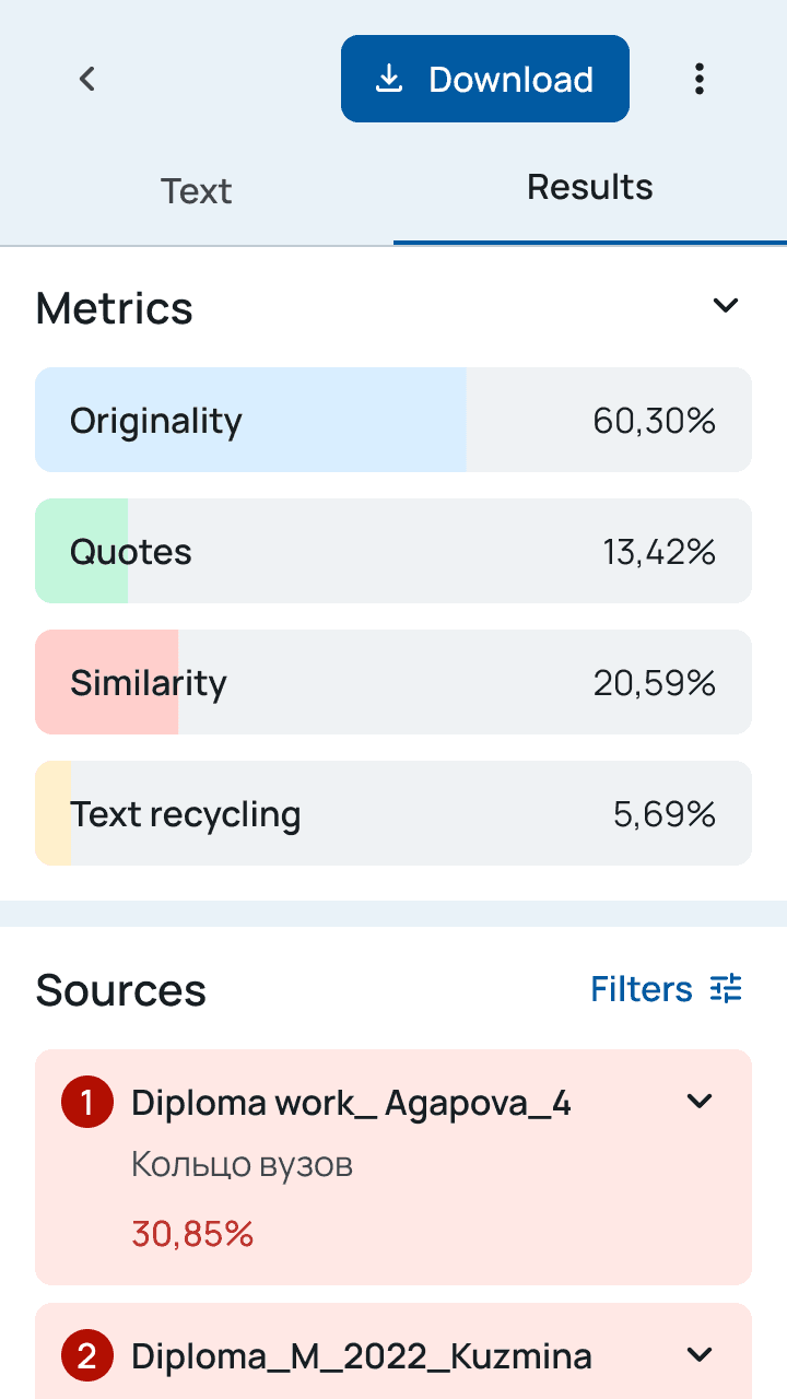 Antiplagiat is the most popular web app among students in Russia to check texts for plagiarism.