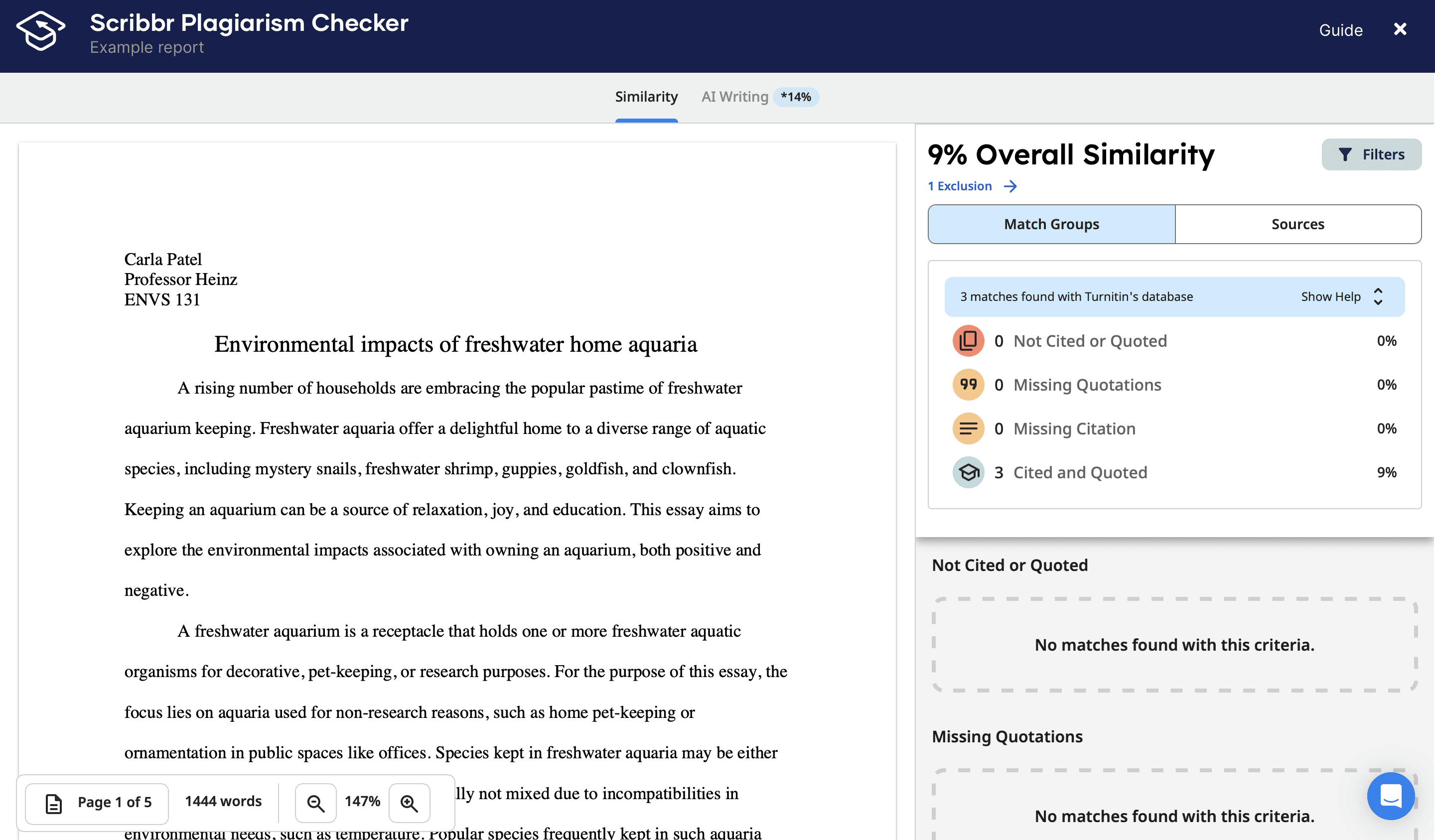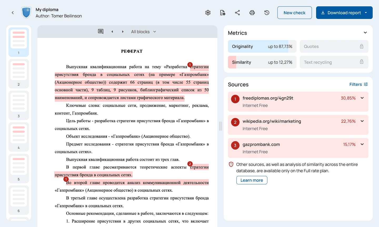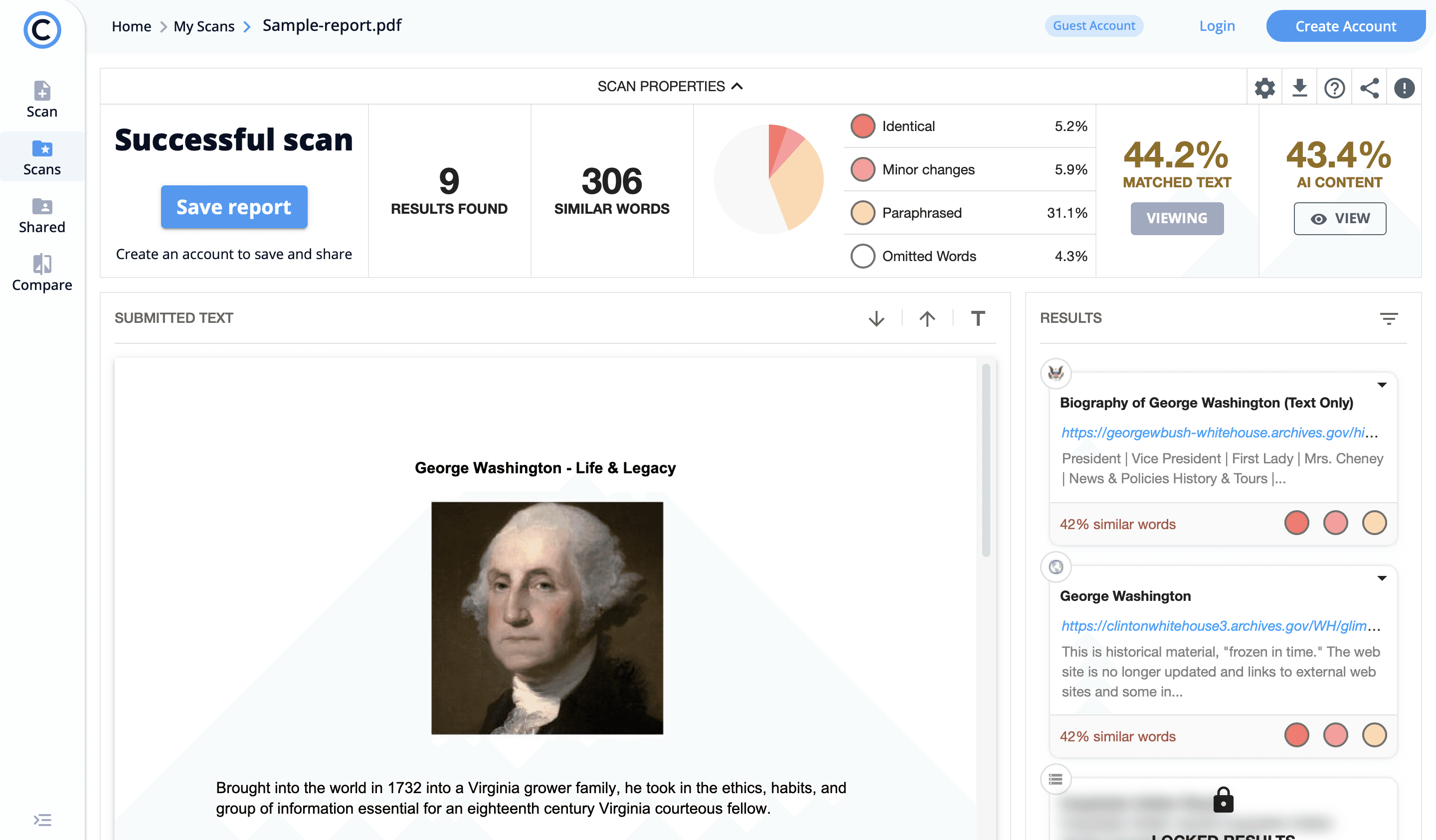 Some of them have a sample report to demonstrate the benefits of paid checks (like Copyleaks in image 2.5)