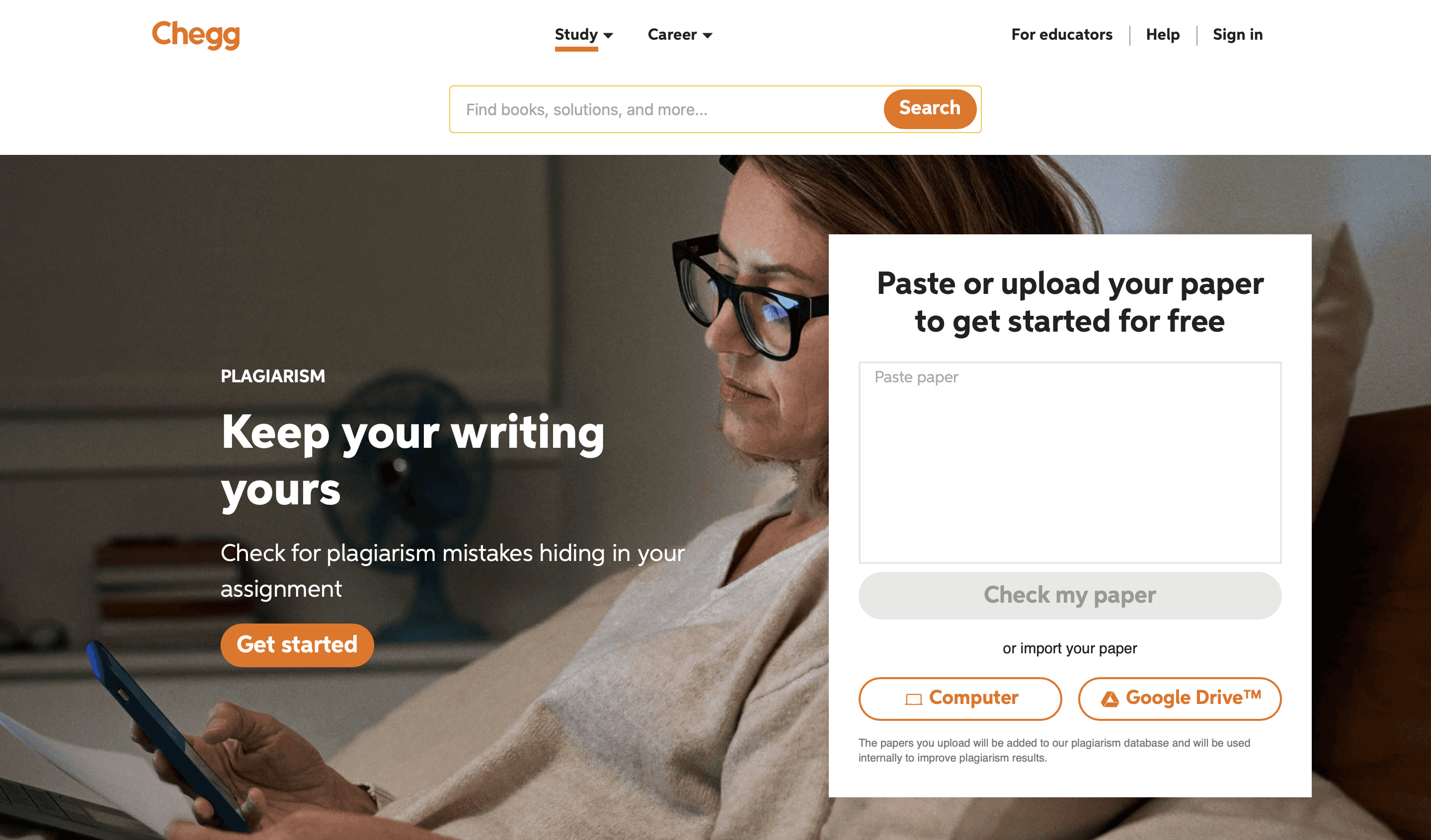 Most of them have a window to paste text or upload file right on the landing page or on the dashboard (like Chegg in image 2.4)